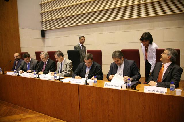 Els consellers d’Agricultura, Ramaderia i Pesca, Jordi William Carnes, d’Educació i Universitats, Joan Manuel del Pozo, han signat avui amb l’alcalde de Lleida, Àngel Ros, i el rector de la Universitat de Lleida (UdL), Joan Viñas, un conveni marc per a l’impuls de R+D+I a Lleida.