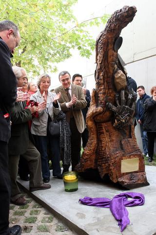 L'alcalde de Lleida, Àngel Ros, ha dit que "l'escultura, ubicada al centre de la ciutat, al seu cor, simbolitza la repulsa de Lleida per la violència de gènere i el suport de la ciutat a les famílies afectades". L'obra, de 2,30 metres d'alçada i 700 quilograms, té a la seva base tres llàgrimes de ferro en homenatge a les darreres víctimes de la violència de gènere a Lleida.
