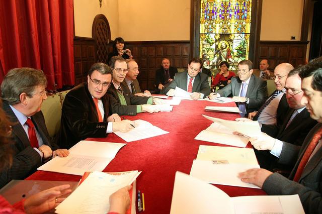 L’alcalde de Lleida, Àngel Ros, el director general de l’Institut de Recerca i Tecnologies Agroalimentàries (IRTA), Josep Tarragó, el rector de la Universitat de Lleida (UdL), Joan Viñas i el president de CEOPAN, Lorenzo Alonso Sànchez, han presidit aquest matí a Lleida la signatura dels Estatuts del Centre de Difusió Tecnològica del Pa i la creació de la seva Fundació Privada.
