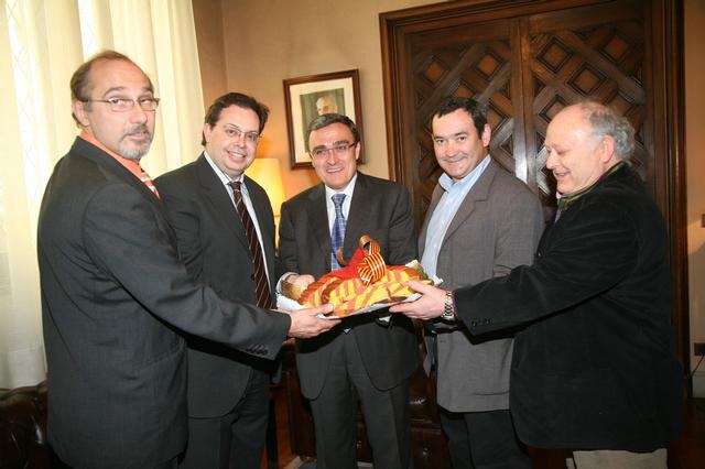 L'alcalde de Lleida, Àngel Ros, ha rebut aquest migdia el president del Gremi de Forners de Lleida i província Manel Llaràs i altres membres de l'associació amb motiu de la presentació del Pa de Sant Jordi, que realitzen tradicionalment els forners de Catalunya.