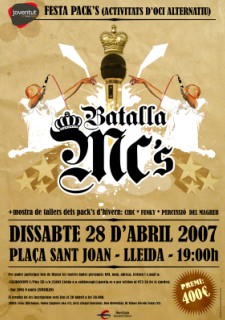 La festa dels Pack's començarà demà a les 19h a la plaça Sant Joan. Una batalla d’Mc’s és un concurs per a rimadors de hip hop on el més ràpid, espontani i enginyós és el guanyador. El premi és de 400 euros per al que quedi primer.