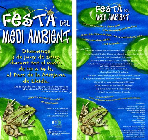 Jocs ambientals, tallers de cuina solar i de jardineria, art amb elements naturals i reciclats, un espectacle a càrrec de l'INEF i l'homenatge a les protectores d'animals de Lleida són algunes de les activitats que es realitzaran diumenge al Parc de la Mitjana, en la Festa del Medi Ambient. Els actes, que tindran lloc entre les 10 i les 14 h, estans oberts a la participació de tothom. Un dels atractius de la jornada serà l'eleboració d'escultures de fusta per part d'autors de l'entitat Arts de Ponent, als quals enguany se n'afegeixen tres procedents de Guadalajara.
