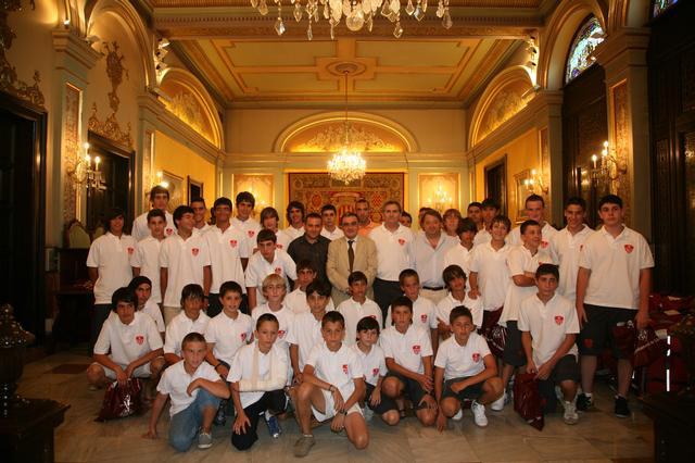L'alcalde de Lleida, Àngel Ros, acompanyat del regidor d'Esports, Txema Alonso, ha rebut aquesta tarda els jugadors del Mercedaris Futbol Club i al creador del club, el pare Joaquin Pina. Els tres equips de l'entitat participen aquest estiu en un torneig a Goteborg (Suècia).