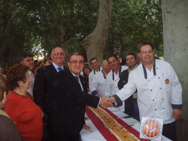 L'alcalde de Lleida, Àngel Ros, ha assistit a l'elaboració de la coca de poma de 100 metres de llarg feta pel Gremi de Fornes de Lleida en el marc de la Fira Sant Miquel. El paer en cap i el president del gremi, Manel Llaràs, han repartit la coca entre els molts assistents a la fira. Per cada tros de coca tothom qui volia podia fer un donatiu que anava destinat a Creu Roja.