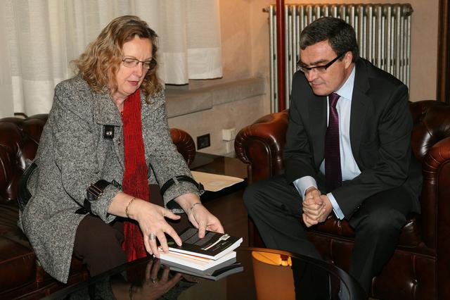 L'alcalde de Lleida, Àngel Ros, ha rebut aquest matí la presidenta de la Fundació Catalunya Segle XXI, Carme Valls, i el gerent de l'entitat, Michael Donaldson.