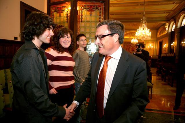 L'alcalde de Lleida, Àngel Ros, l'alcalde de Vinaixa, Francesc Ramon Bonet i l'alcalde de Balaguer, Miquel Aguilà, han rebut aquest migdia al palau de la Paeria els tres alumnes lleidatans que participaran en la final de l'Olimpiada de Física: Arnau Messegue, natural de Balaguer i estudiant de l'IES Ciutat de Balaguer, Diana Tarragó, de Vinaixa i estudiant de l'IES Gili Gaya i Oriol Roig, nascut a Lleida i estudiant de l'IES Gili Gaya.