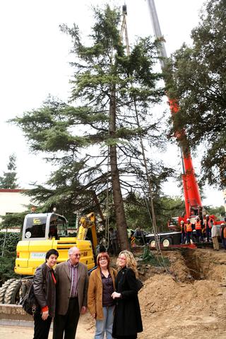 L’alcaldessa en funcions, Montse Mínguez, acompanyada de la primera tinent d’alcalde, Marta Camps, i dels regidors Josep Barberà i Sara Mestres, ha visitat les obres que s’estan duent a terme per fer el trasplantament del gran Cedre que hi ha a la caserna de la Guàrdia Urbana. El projecte de remodelació de la caserna de la policia local ha fet que s’hagi de buscar una nova ubicació per a aquest Cedre centenari de 14 metres d’alçada i un perímetre de 113 centímetres, que es plantarà a la plaça Caterina Albert, propera al recinte de la caserna. El regidor de Medi Ambient, Josep Barberà, ha explicat que “el procediment per a fer el trasplantament ha consistit en col·locar tubs per sota de les arrels i extreure l’arbre verticalment amb una grua de gran tonatge per col·locar-lo damunt d’una plataforma”. El projecte de remodelació de la caserna de la Guàrdia Urbana permet mantenir al jardí del quarter una alzina de 235 centímetres de perímetre de tronc, 1 cedre de 164 centímetres de perímetre de tronc, 1 avet de 123 centímetres de perímetre de tronc, i un conjunt d’arbustos. Barberà ha destacat que “pel gran valor d’aquests arbres, el projecte de remodelació de la caserna contempla la compatibilitat d’aquestes espècies amb la futura construcció”. El regidor de Medi Ambient ha explicat que “aquesta actuació és important per a la ciutat perquè s’emmarca en la importància de protegir la natura i que s’ha optat per no conservar alguns arbres perquè patien malalties i s’ha considerat més factible no mantenir-los. A canvi, l’Ajuntament de Lleida planta molts arbres a altres llocs de la ciutat, com al SUR 5 on es preveu plantar més de tres mil”. D’altra banda, a finals de gener es van trasplantar dues acàcies de Constantinopla, d’uns 20 anys, que es troben a la caserna de la Guàrdia Urbana i que es plantaran igualment a la plaça Caterina Albert. A més, es trasplanten 50 rosers que es distribuiran per diferents llocs de la ciutat, com els Camps Elisis o el cementiri municipal. Properament, és previst que els tècnics trasplantin també des de la caserna a la plaça Caterina Albert un avet d’uns 12 metres d’alçada i 80 centímetres de perímetre de tronc. D’altra banda, la regidora de Seguretat Ciutadana, Sara Mestres, ha explicat que “és important conservar aquest arbrat pel seu valor històric i, en aquest sentit, el projecte de la nova caserna manté molts arbres perquè es patrimoni de la nostra ciutat”. Mestres ha destacat que “s’ha hagut de compatibilitzar la construcció d’un edifici de més de 5.000 mestres quadrats amb la conservació dels arbres”. La regidora de Seguretat Ciutadana ha explicat que després de Setmana Santa es començarà el trasllat de les dependències de la Guàrdia Urbana i llavors hi haurà un període d’adaptació fins que al juliol o agost es comenci l’enderroc de l’actual edifici de la caserna.