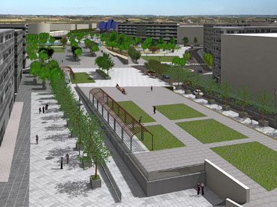 El projecte adjudicat a la UTE Acsa-Arnó-Glauca incorpora millores al projecte inicial amb la finalitat d’incorporar més espais verds i rampes més suaus i integrades mediambientalment. En aquest sentit, es canvien algunes espècies d’arbres. A més també es proposa la creació de dues zones de jocs infantils, que contemplarien la instal•lació de mobiliari infantil reglamentari i bancs, a més de l’increment d’arbrat d’ombra, per millorar la comoditat en temps estivals. També es proposa substituir les pilones de delimitació de vianants per jardineres de fosa i de fusta quadrades, en les quals es plantarien Arbres de Júpiter i Hibisc de Síria, acompanyats d’arbustives de port baix o flor de temporada.