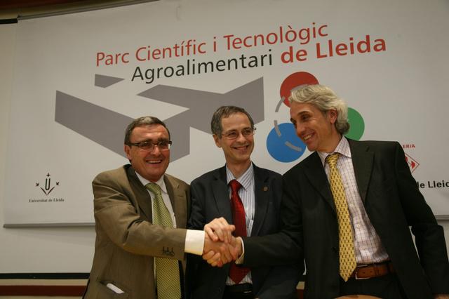 president del PCiTAL i Rector de la Universitat de Lleida, Joan Viñas, i del vicepresident del PCiTAL i alcalde de Lleida, Àngel Ros ha presentat el nou projecte d'expansió de l'empresa a Lleida, a la seu del PCiTAL.