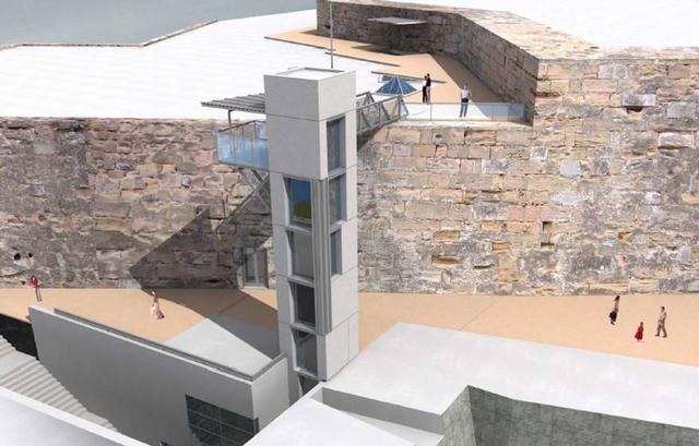 A més, s’ha començat ja la torre de l’ascensor de 21 metres d’alçada que pujarà des del pati fins a l’alçada on connectarà amb una passarel·la que donarà accés al Baluard de Louvigny, així com l’obra per allotjar una estació transformadora que abastirà d’energia elèctrica tot el complex (ascensor, enllumenat públic, etc.).