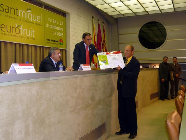 “Cal felicitar-se perquè en un any de dificultats econòmiques evidents, la Fira de Sant Miquel ha aguantat bé” ha afirmat Àngel Ros, alcalde de Lleida i president del Patronat de la Fundació La Fira de Lleida (Adjuntem ARXIU DE SO). La doble manifestació firal conformada per la Fira de Sant Miquel i el saló Eurofruit ha tancat les portes amb un balanç de més de 185.000 visitants, dels quals aproximadament 33.000 professionals, unes xifres molt similars a les de l'edició passada. En canvi, les 42 jornades tècniques celebrades en el marc de la fira han aplegat 3.970 inscrits, un 10% més que l'any 2007. L'alcalde de Lleida també s'ha referit a l'alt nivell de satisfacció del expositors, tant pel que fa al número de contactes fets com a les operacions comercials tancades. Precisament, el director general de Fira de Lleida, Oriol Oró, ha explicat que alguns tractors i equips agrícoles ja tenien penjat el cartell de “venut”. Oro ha aprofitat la presentació del balanç del certamen per assegurar que Fira de Lleida potenciarà en pròximes edicions la presència de visitants professionals. El president de la Cambra de Comerç i Indústria de Lleida i de la Comissió Delegada de la Fundació, Joan Simó, ha dit de la seva banda que, pel que fa a la demarcació de Lleida, la bona campanya registrada en el sector de la fruita pot contribuir a pal•liar els efectes de la crisi econòmica. La 54a edició de la Fira Agrària de Sant Miquel i la 23a edició d’Eurofruit (Saló Internacional del Sector de la Fruita) ha tingut lloc entre el 25 i el 29 de setembre amb la pressència de 334 expositors, una superfície neta de 26.345 m2 i un ampli programa que ha inclòs 62 activitats paral•leles (42 jornades tècniques, 11 reunions professionals, i 9 demostracions i exposicions). Entre les novetats que ha registrat enguany la fira cal destacar activitats infantils com la “Zona de Granja”, on els nens han pogut familiaritzar-se amb els animals de granja, o el tast guiat infantil de fruita. Parlant de degustacions, el saló ha acollit també tastos guiats d’olis, fruita, vins, mels i formatges; degustacions de cuina de la fruita, vedella, conill, cuina del porcí i reposteria del torró, així com el tast popular interactiu Lleida Qualitat, organitzat per la Diputació de Lleida amb finalitats benèfiques. Altres novetats d'aquesta edició de Sant Miquel han estat l'exposició d'imatges de l’Exposició Agrícola de Lleida del 1928, les mostres de tractors mítics de l'Horta de Lleida i de tractors clàssics de la marca Volvo, així com la presentació per part del Gremi de Forners de les Terres de Lleida del nou “Pa dels Templers”, un innovador aliment que se elabora seguint les receptes de fa mil anys i amb productes de l’època medieval, però adaptant-los als gustos d’avui en dia. En el capítol d’activitats paralel•les cal incidir també en la convocatòria de tres guardons ja consolidats com el Premi del Llibre Agrari i el Premi a la Innovació Tecnològica i Seguretat en el Disseny de Màquines Agrícoles i el Concurs a la Innovació en el Sector de la Fruita. Aquests guardons han estat lliurats als guanyadors en el decurs de l'acte de cloenda oficial de la fira. Precisament, l’empresa Argilés Disseny i Fabricació, SA, de Miralcamp, amb la col•laboració de l’Institut Valencià d’Investigacions Agràries, s’ha endut el 12è Premi a la Innovació Tecnològica i Seguretat en el Disseny de Màquines Agrícoles, dotat amb 3.000 euros i un diploma, per una nova màquina d’assistència en la recol•lecció i la classificació en camps cítrics. La firma Greefa-Rubinat Electrònica Industrial SL, de Golmés, ha rebut el primer premi del Concurs d’Innovacions en el Sector Fructícola, dotat amb 1.000 euros, per la presentació d’un buidador de palots en bassa d’aigua. Aquest equip s’adapta a tot tipus de fruit, tant els que floten en aigua (pomes) com els que no (peres). Pel que fa al Premi del Llibre Agrari, el Manual de diferenciació racial escrit pel professor Carlos Sañudo i publicat per l’editorial Servet ha estat el guanyador de la 37a edició del Premi del Llibre Agrari, guardó dotat amb 6.000 euros i una placa commemorativa.