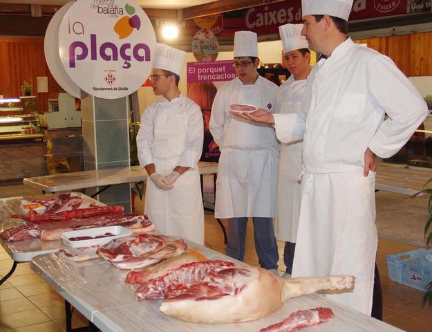 Alumnes de 3r d’educació primària del Col·legi d’Educació Infantil i Primària Sant Josep de Calassanç de Lleida han descobert, aquest matí, a la “Plaça” del Mercat Municipal de Balàfia, quin és el procés d’elaboració de productes molt habituals en la seva alimentació com, per exemple, el pernil dolç. Això ha estat possible gràcies al taller de cuina infantil “El porquet trencaclosques”, activitat a la que ha assistit la regidora de Comerç, Mercats i Consum, Dolors Arderiu i que ha comptat amb la supervisió d’alumnes i professors de l’Escola d’Hoteleria i Turisme de Lleida. “El porquet trencaclosques” ha començat amb l’especejament en directe d’un porc davant l’atenta mirada dels infants que han comprovat com es disseccionava un porc i han vist també, les diferents parts en què s’anava transformant l’animal. Així doncs, els alumnes de primària participants al taller han pogut veure i, fins i tot, tocar les costelles, el llom, el rellom, el cap, els peus, les orelles, l’espatlla, les vísceres, etc. del porc especejat. Després, els conductors del taller han explicat com s’elaboren productes com el pernil, l’hamburguesa o la botifarra; aliments que han resultat familiars a tots els nens. A més, la mainada ha pogut descobrir coses com perquè la botifarra negra és d’aquest color o perquè el pernil dolç s’elabora amb una setmana, mentre que el pernil salat tarda mesos en preparar-se. L’activitat ha continuat amb una segona part més participativa per a la mainada, ja que els alumnes de l’Escola d’Hoteleria i Turisme els han ensenyat a preparar diferents broquetes amb productes que s’obtenen del porc com el pernil dolç. Finalment, els alumnes han fet les seves propies creacions que després han tastat. D’aquesta manera s’ha tancat tot el cicle i els infants han comprovat l’origen, l’elaboració i la preparació d’un producte molt habitual en la seva dieta com són, per exemple, el pernil dolç i el salat. La campanya “Slowshop, tenim tot el temps del món per a tu” continua demà al Mercat Municipal Ronda-Fleming on es farà, a partir de les 11h, un taller de cuina de productes frescos cuinats però, amb microones. Dissabte es desenvoluparà una activitat molt atractiva per a la mainada:“El Contacontes: Contes amb gust de Fruita”; activitat que se celebrarà al Mercat Municipal de Balàfia i que finalitzarà amb un tast d’una peça de fruita gràcies a la col·laboració de Catalonia Qualitat. Programa d’activitats divendres 10 – Mercat de Ronda-Fleming 11-13h “Cuina i receptes amb microones”, amb Marilén Feixa (Gratuït) dissabte 11 – Mercat de Balàfia “El contacontes: Contes amb gust de Fruita”, de Pagès editors, acompanyats d’un tast de fruita 10h - El Nil i els colors de la poma 11h - La Lluna i les peres de l’alegria 12h - El Jordi i l’aroma del préssec Acompanyat d’un tast de fruita
