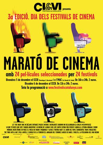 La 3a edició del Dia dels Festivals de Cinema tindrà lloc els dies 4, 5 i 6 de desembre al Centre de Cultura Contemporània de Barcelona. Els dies 4 i 5 se celebrarà la Trobada de Directors (jornades per a professionals) que es podran seguir des de la sala Alfred Perenya de l’IMAC via la tecnologia digital de l’Anella Cultural i el dia 5 es durà a terme la Marató de Cinema (oberta al públic), amb un total de 24 pel·lícules seleccionades per 24 festivals socis de la Coordinadora. Les pel·lícules programades pel dia 5 de desembre es projectaran simultàniament al CCCB i també a l’IMAC.
