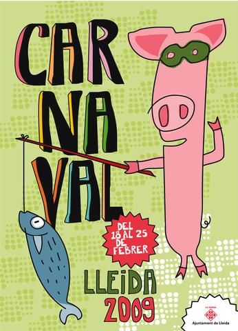 El cartell combina diferents elements relacionats amb la festa: el porc, la màscara, la sardina, amb uns colors llampants i vistosos i amb el lema Carnaval i Lleida clarament realçat i remarcat. A diferència d’altres anys, l'exposició dels cartells s'ha vinculat al Carnaval i es podrà veure a la Sala d’exposicions de sant Joan del 17 de febrer al 4 de març. El Carnaval se celebra del 18 al 25 de febrer.
