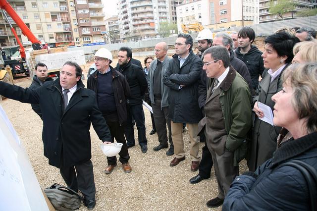 L’alcalde de Lleida, Àngel Ros, acompanyat de la primera tinent d’alcalde, Marta Camps, ha visitat aquest dimarts les obres l’aparcament subterrani de la plaça Ricard Viñes, que es troba en plena execució. Els operaris han acabat el mur de pantalla perimetral per assegurar l’estabilitat del terreny com a pas previ per seguir excavant el pàrquing. De moment, s’ha perforat fins a dos metres de profunditat, per construir aquest mur. A partir d’ara, es continuarà amb l’excavació fins arribar als 10 metres de profunditat que preveu el projecte i que correspon a tres plantes que encabiran 466 places d’aparcament. arxius de so de l'alcalde, Àngel Ros arxiu de so de l'arquitecta, autora del projecte, Benedetta Tagliabue La previsió és que l’excavació es prolongui durant un mes i mig. S'extrauran uns 10.000 metres cúbics de terres, que es traslladan al recinte de les Basses, a fi i efecte d’aprofitar-les per als treballs de condicionament de la zona. Un cop finalitzin els treballs d’excavació de l’aparcament de la plaça, es començaran a fer les cimentacions per després iniciar la col·locació de l’estructura. El calendari d’obres estableix que l’aparcament estigui acabat a mitjans de l’any 2010 i la nova plaça a finals del mateix any. El passat mes de febrer es va aprovar el projecte bàsic de la plaça i, hores d’ara, s’està redactant el projecte executiu que determinarà la tipologia del paviment de la plaça, la definició del format de les zones elevades de la plaça (sortides de l’aparcament, ascensors i caixes d’escala); el nombre, definició i tipologia dels elements vegetatius de la plaça, així com la definició i format de les terrasses adjacents a la plaça. Una plaça amb personalitat A banda de la construcció de l’aparcament de 3 plantes i 466 places, el projecte preveu la construcció d’una rotonda enjardinada a la cruïlla de Rovira Roure i Balmes amb Prat de la Riba, la reordenació del primer tram de Martin Ruano i Doctor Fleming i l’execució d’una nova plaça amb diversos espais verds, amb gespa, arbustos i arbres en forma de laberint i marcant diversos recorreguts per a vianants i per la celebració de diverses activitats d’oci. En total està previst que es reurbanitzin 8.900 metres quadrats de superfície, entre la nova plaça, els dos carrers que es reordenaran i la rotonda de regulació del trànsit (que facilitarà tant els moviments d’entrada i sortida al pàrquing subterrani, així com la reordenació del trànsit dels carrers i avingudes adjacents, com són Prat de la Riba, Rovira Roure i Balmes), el que permetrà recuperar gairebé 4.000 metres quadrats de superfície per als vianants en relació a la plaça actual. El projecte aposta per un disseny en planta en forma de trapezi que manté la forma de laberint. Els accessos a l’aparcament, que tindrà tres plantes i una capacitat de 466 places, estaran integrats en la plaça i més propers a l'avinguda de Balmes. Els accessos verticals (escales i ascensor) es troben un al costat de les rampes de vehicles i l’altre prop de l'avinguda Fleming, tots dos a l’interior de l’àmbit de la plaça. Tot el disseny de la plaça està basat en el joc de l’espai verd en forma de laberint conformant espais d’usos d’oci, de jocs infantils, de passeig, bancs, etc. La rotonda està dissenyada amb una plantació verda conformant un suau monticle amb forma de laberint i composat amb una combinació de vegetació i paviment de maons.