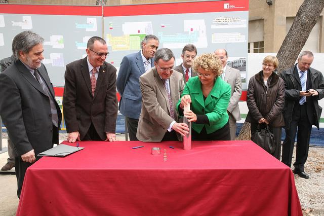 La Consellera de Salut, Marina Geli, ha col·locat aquest matí la primera pedra de l'ala est de l'Hospital de Santa Maria de Lleida. L'han acompanyat l'alcalde de Lleida, Àngel Ros i el delegat del Govern de la Generalitat a Lleida, Miquel Pueyo. El paer en cap ha agraït a la conselleria l'aposta per la ciutat de Lleida en l'execució de projectes destacats com el centre de salut de la Mariola o ara l'ampliació de l'Hospital de Santa Maria: "La conselleria és un dels grans inversors a Lleida tant en sector públic com en el privat". Coincidint amb l'execució de l'ala est de l'Hospital de Santa Maria Ros s'ha compromès a enderrocar la tanca que envolta el centre i integrar urbanísticament el recinte a la ciutat. Pel que fa als llocs d'aparcament, que actualment es troben dins del recinte dels jardins de l'hospital, l'alcalde ha explicat que l'Ajuntament buscarà uns terrenys propers on s'hi pugui situar un pàrquing. (ARXIU DE SO Àngel Ros) Els treballs de construcció de l'ala est del centre un pressupost d'obra de 6.238.391 € i un termini d'execució de 22 mesos. El total de la inversió prevista és de més d'11, 5 milions d'euros. Les obres de reforma del centre hospitalari permertan incloura una unitat de cirurgia de curta estada, dotada amb 20 llits, una unitat d'hospitalització de cirurgia amb 24 llits, una unitat de cirurgia major ambulatòria de 13 places, una unitat de reanimació de 8 llits i una de semicrítics amb 8 llits. Aquest projecte permetrà alliberar llits a la unitat sociosanitària ubicada a l'ala 5a nord de l'Hospìtal Arnau de Vilanova.