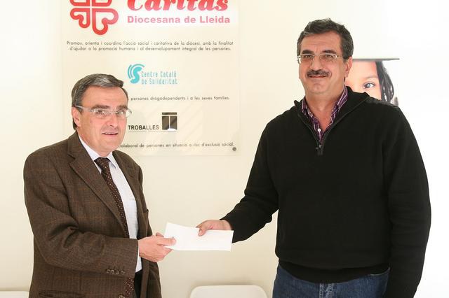 L'alcalde Àngel Ros i la regidora Rosa Ball ha fet donació aquesta tarda a responsables de Càritas del premi en metàl.lic atorgat a l'alcalde de Lleida pel Caliu Ilerdenc pel conjunt d'articles sobre les vegueries, a Càritas. El lliurament ha tingut lloc a la seu de Càritas Diocesana a Lleida, a la plaça Sant Josep.