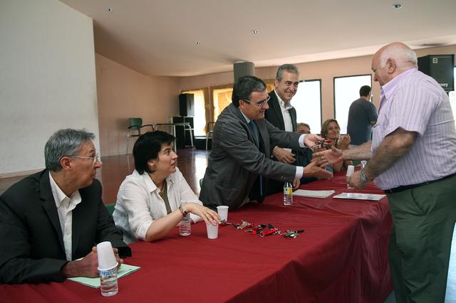 L’alcalde de Lleida, Àngel Ros, i el director general de Promoció de l'Habitatge de la Generalitat, Joaquim Gascó, han presidit l’acte simbòlic de lliurament de les claus de 44 habitatges de protecció oficial construïts al barri de Pardinyes, al carrer de Vicenç Ximenis. Al lliurament també han assistit la primera tinent d’alcalde, Marta Camps; el delegat de Medi Ambient i Habitatge a Lleida, Joan Farré; el director territorial d’Adigsa a Lleida, Lluís Claverol; i la gerent de l’Empresa Municipal d’Urbanisme, Cristina Ballesté.
