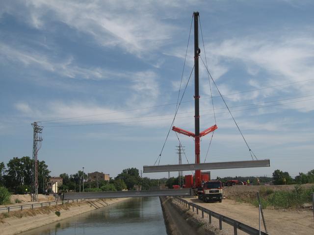 Per fer la rotonda, s’han de construir dos ponts per passar per sobre del canal. Aquesta actuació, que es farà durant el dia d’avui, comporta la col•locació de 10 bigues prefabricades