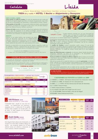 La ciutat de Lleida és present a l’oferta turística espanyola a través dels paquets escapadas en tren, que inclouen els bitllets de tren AVE d’anada i tornada i estada en un hotel del catàleg. Aquests paquets són de la majorista de viatges AVIOTREN.