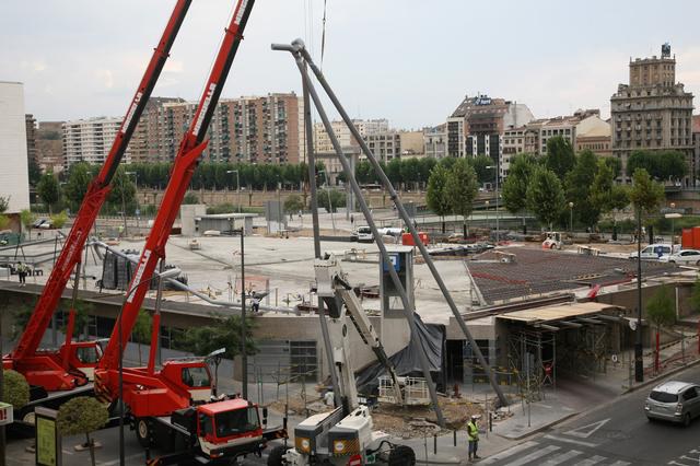 Avui s’han començat a instal·lar les "Torres de les Paraules" a la plaça de Bas Infante en el marc de les obres d’urbanització de la coberta de l’aparcament per crear-hi un espai urbà. Els operaris han iniciat la col·locació d’aquestes formes escultòriques verticals que consisteixen en vuit elements sostinguts per tres o quatre potes de perfils tubulars de 300 mm de diàmetre que s’eleven 20 metres sobre el paviment. A l’extrem superior es connecten entre elles per mitjà d’una estructura tubular del mateix diàmetre. Les "Torres de les Paraules" seran l’element distintiu de la nova plaça i potenciaran la visual de la Seu Vella.