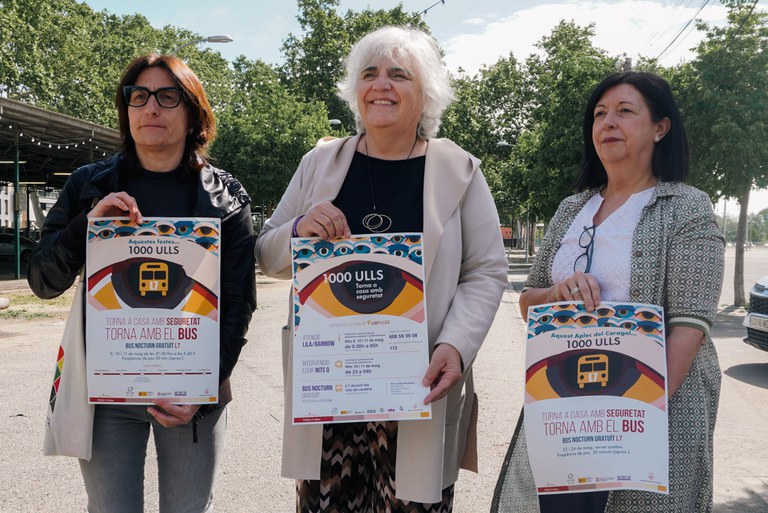 L’Ajuntament de Lleida tornarà a activar el Dispositiu Integral de Seguretat per a la prevenció de les violències masclistes i LGTBIFòbiques en l’oci nocturn en el marc de la campanya “1000 Ulls” per garantir que la Festa Major de Lleida sigui un espai festiu marcat pel civisme i per la seguretat per a totes les persones. L’ampli dispositiu municipal consta de diferents equips de Punt Lila-Rainbow i Nits Q, així com un autobús nocturn gratuït de la línia L7, les nits del 9, 10 i 11 de maig. El dispositiu, que ha presentat aquest matí la tinenta d’alcalde i responsable de la Regidoria de Polítiques Feministes, Carme Valls, acompanyada de la Cap de la Unitat Tècnica de Polítiques d'Igualtat, Isabel Hornos, i la Responsable de l’Àrea Prevenció i Intervenció en Addicions, Marta Escolà, es repetirà les nits del 23 i 24 de maig per l’Aplec del Caragol.