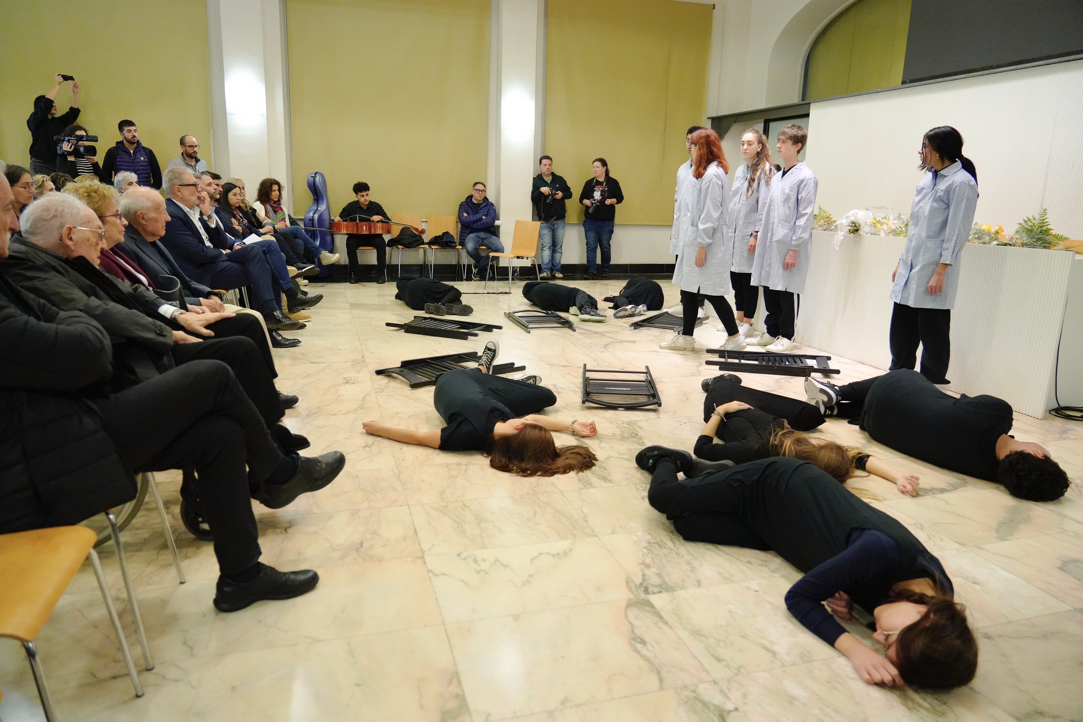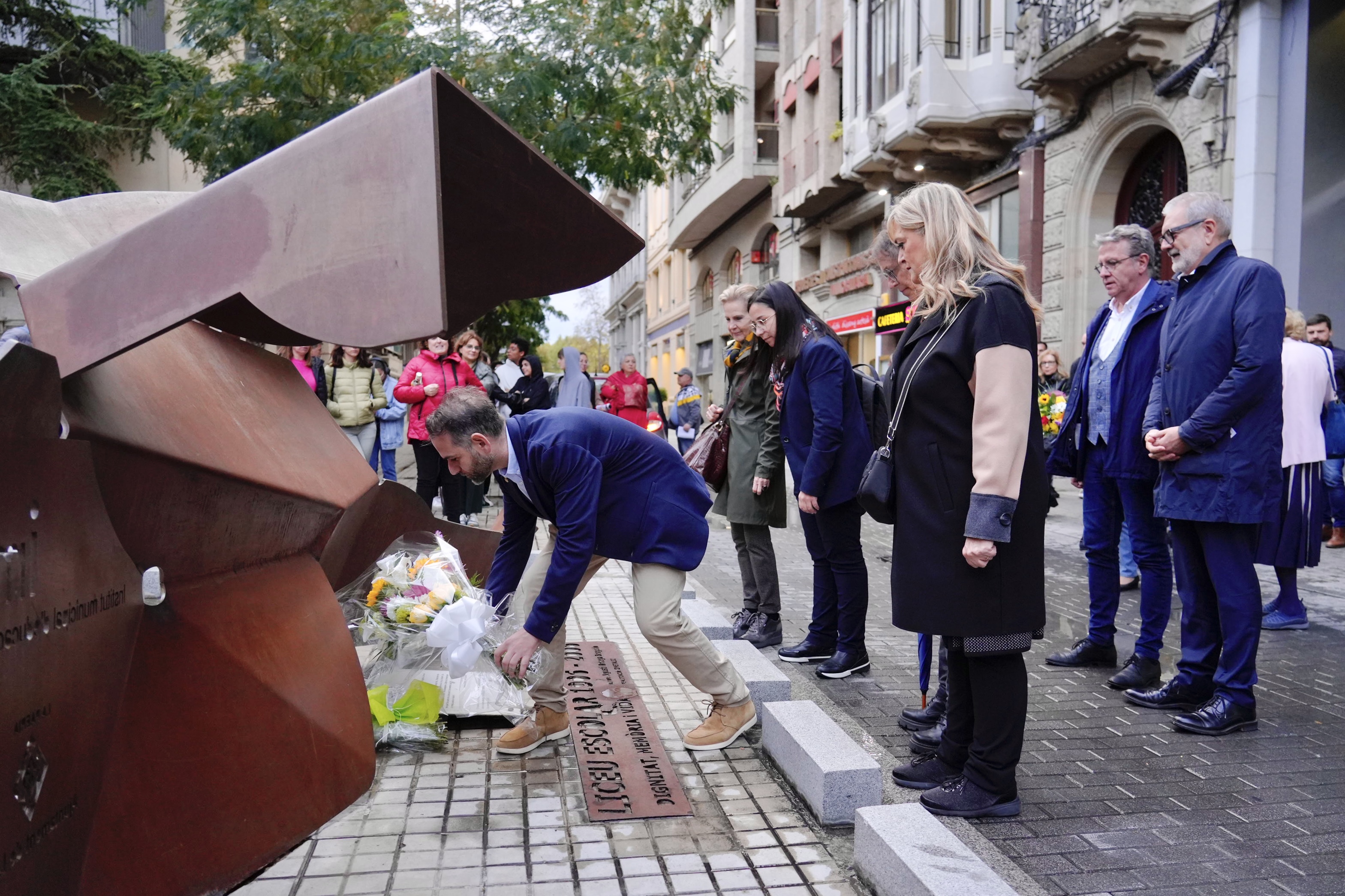L’acte d’enguany ha comptat amb la presència de Jordi Quilez i Manuel Sampedro, exalumnes i supervivents del bombardeig al Liceu Escolar de l’any 37, i de familiars d’altres víctimes de l’atac, que ja han traspassat, com les filles de Josep Triquell i Josep Piró, la neta de Frederic Godàs i un nebot de Ramon Ortín.