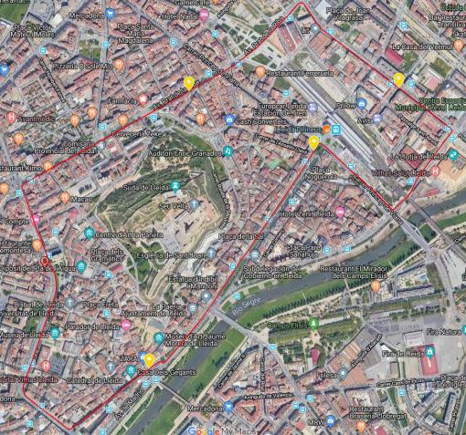 Els autobusos de les línies que circulen per l’ Av. de Madrid (tram comprés entre el Pont Vell i la Pl. d’Espanya seran desviats mentre la cursa estigui transcorrent per aquesta via (aproximadament entre 16:45 i les 17:15 hores).