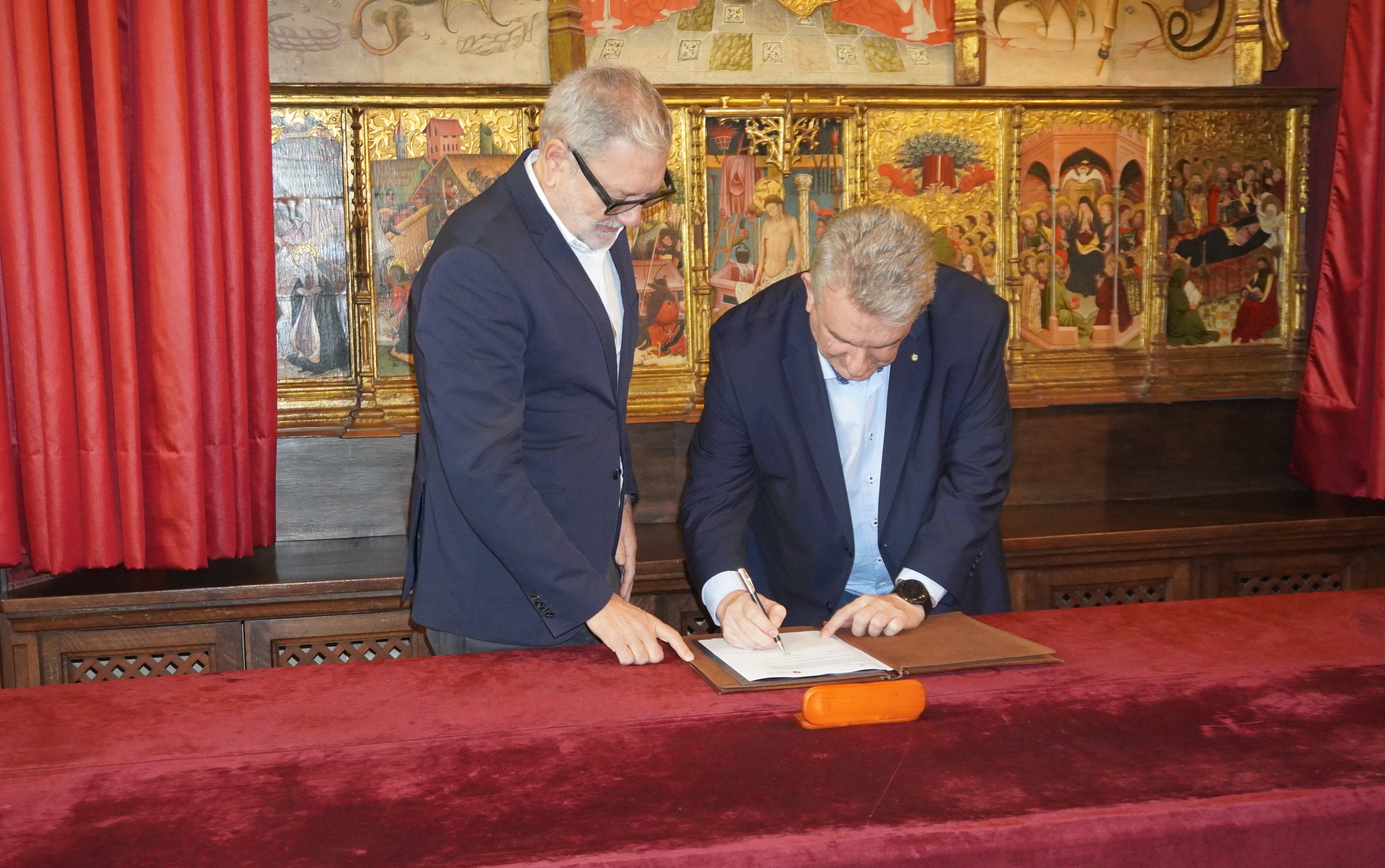 L’acte s’ha fet al Saló del Retaule, amb els representants dels grups polítics amb representació a la Paeria.
