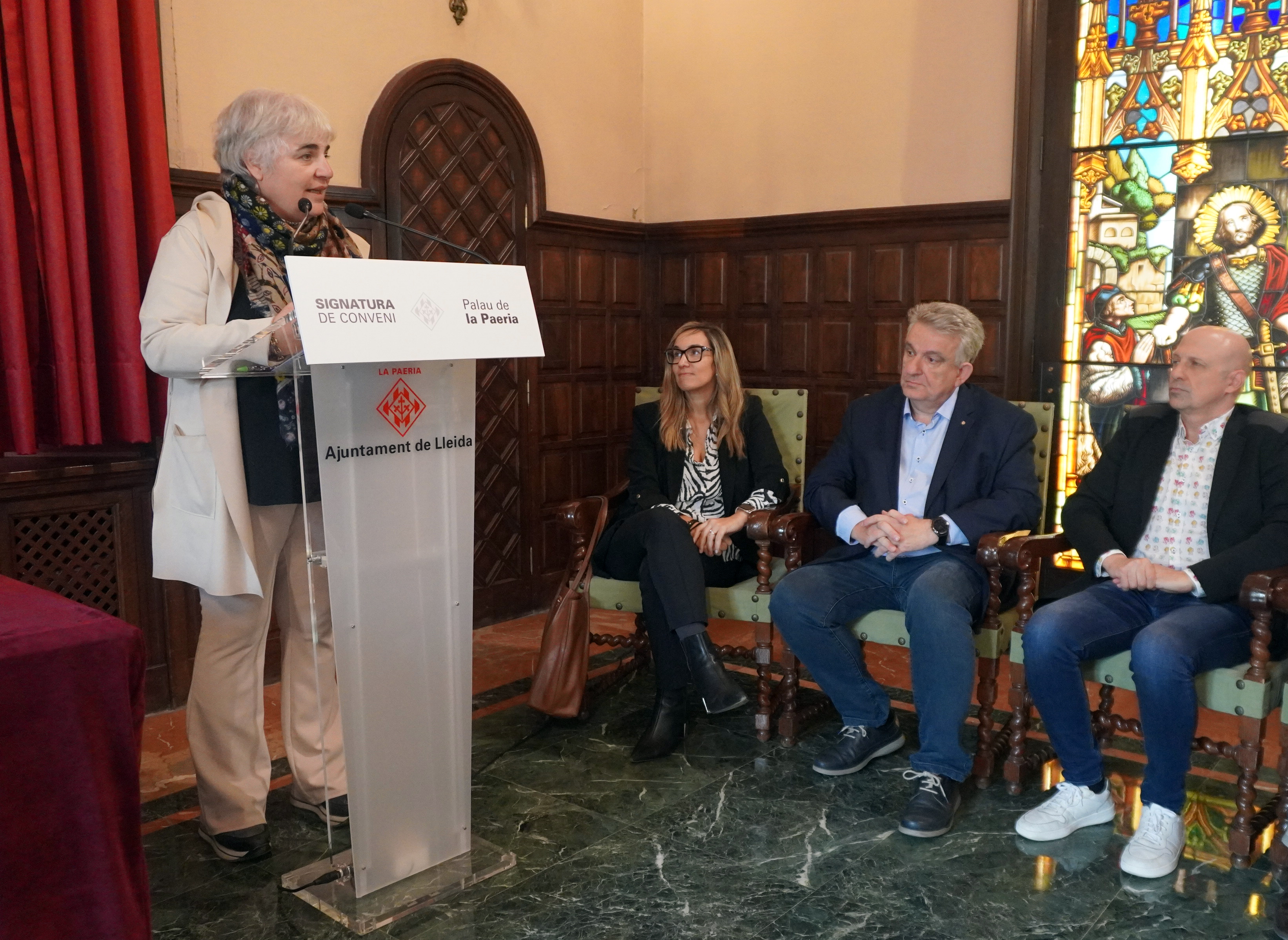 Signatura de convenis, per un import de 52.000 euros en total, amb l’Associació Ap! Lleida, la Cambra de Comerç, l’Associació Empresa Familiar, la Fecom, la Coell i Pimec