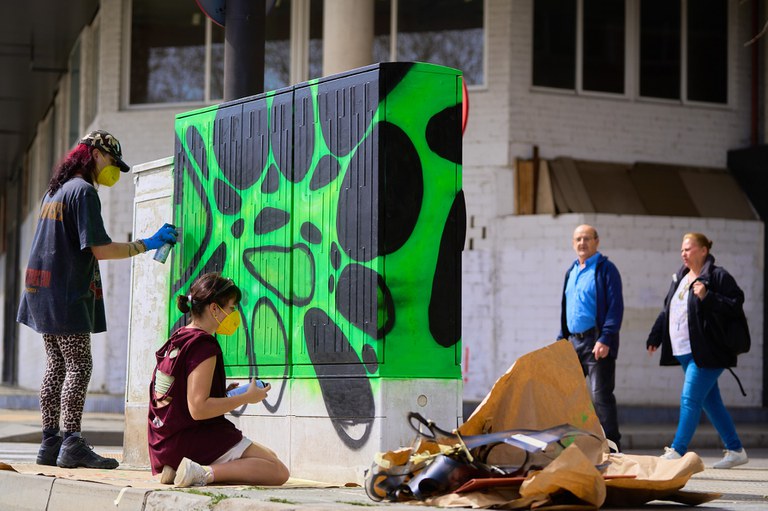Alumnes de l’Escola d’Art fan una intervenció artística en els armaris d’instal·lacions de la ciutat