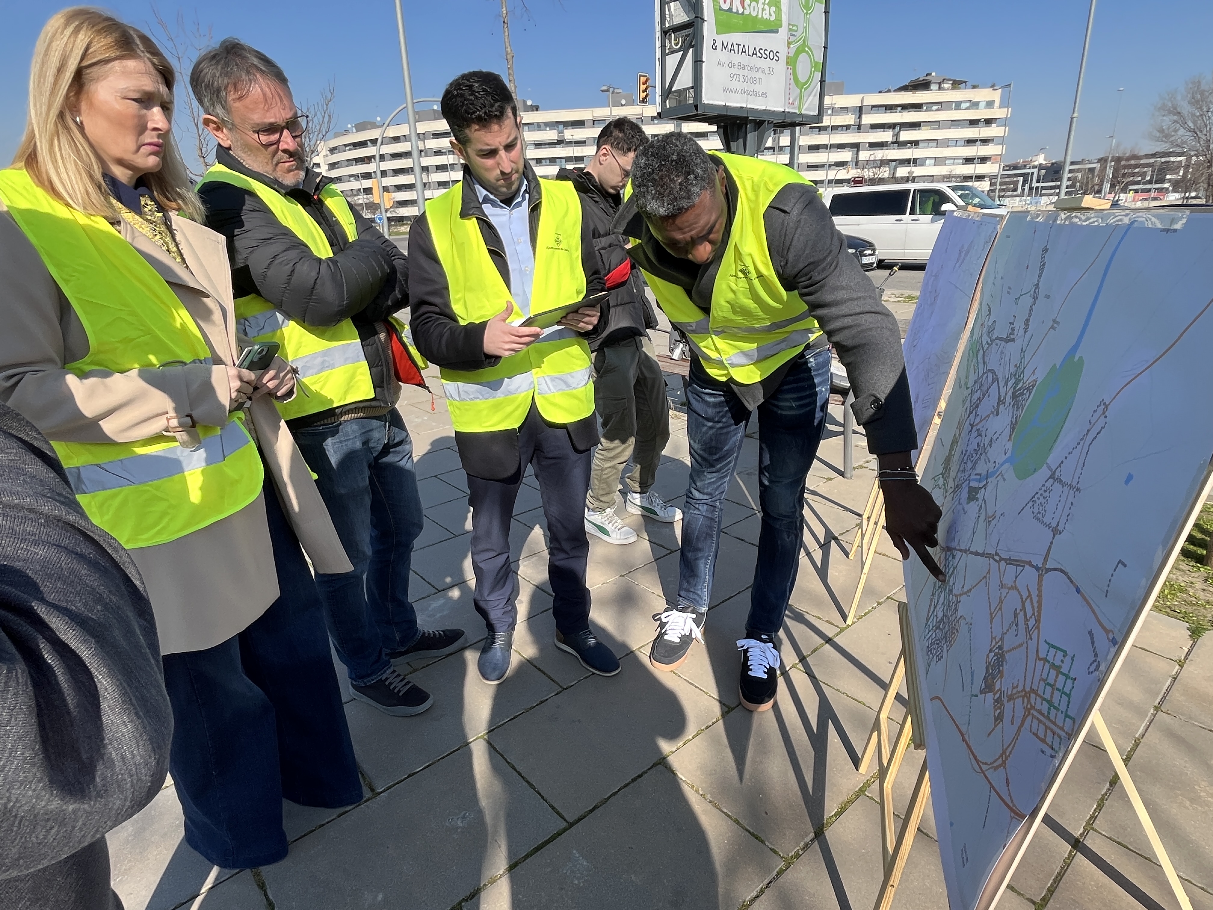 La tinenta d'alcalde Begoña Iglesias i el regidor Jackson Quiñónez han visitat avui les actuacions al carrer Àngel Moncusí.