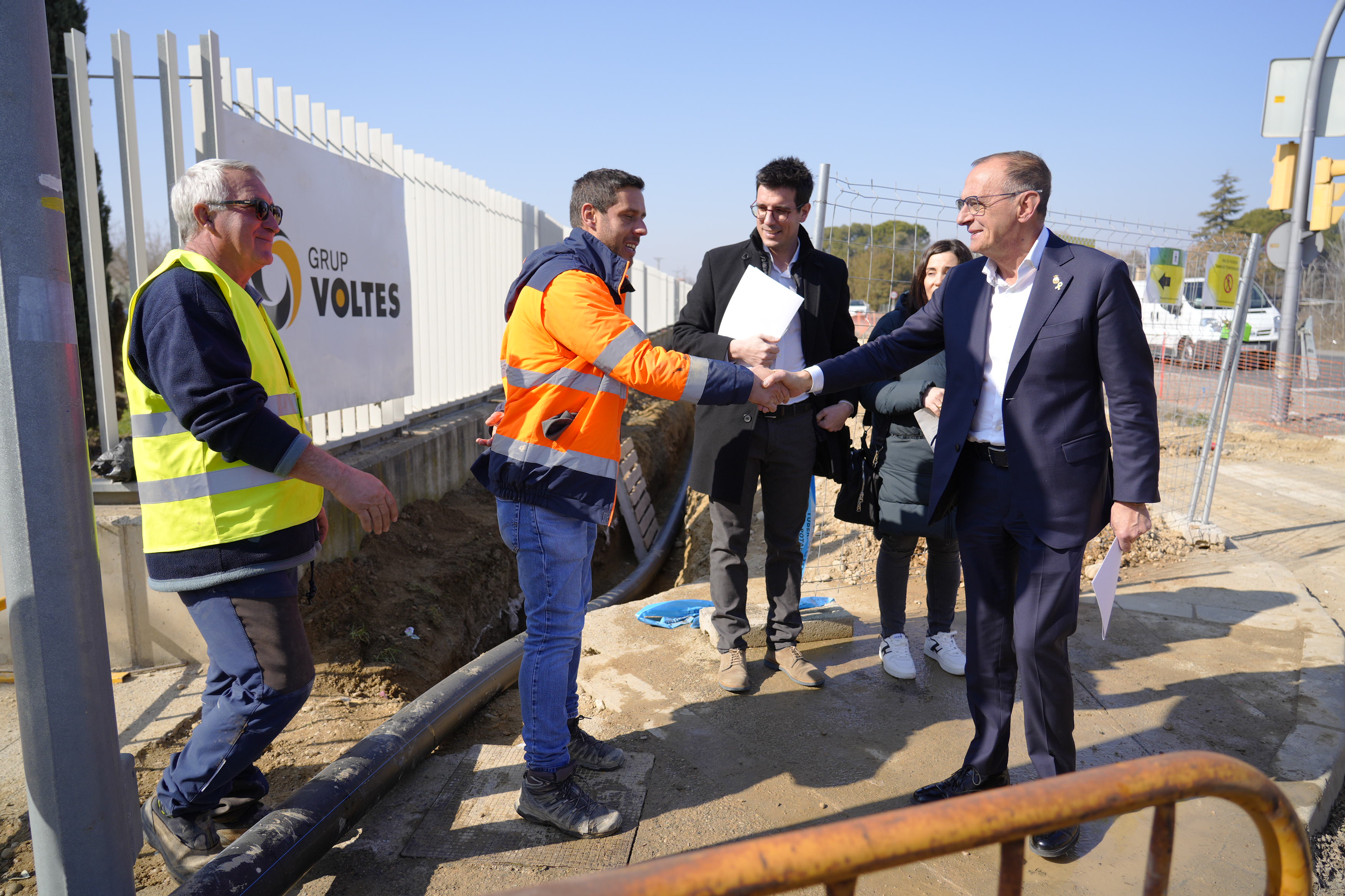 L’alcalde, Miquel Pueyo, i el primer tinent d’alcalde i regidor d’Urbanisme, Toni Postius, han visitat les obres de desdoblament i millora de l’avinguda de Rovira Roure, que es realitzen lligades a la construcció d’un supermercat a l’altura de l’església de Montserrat.