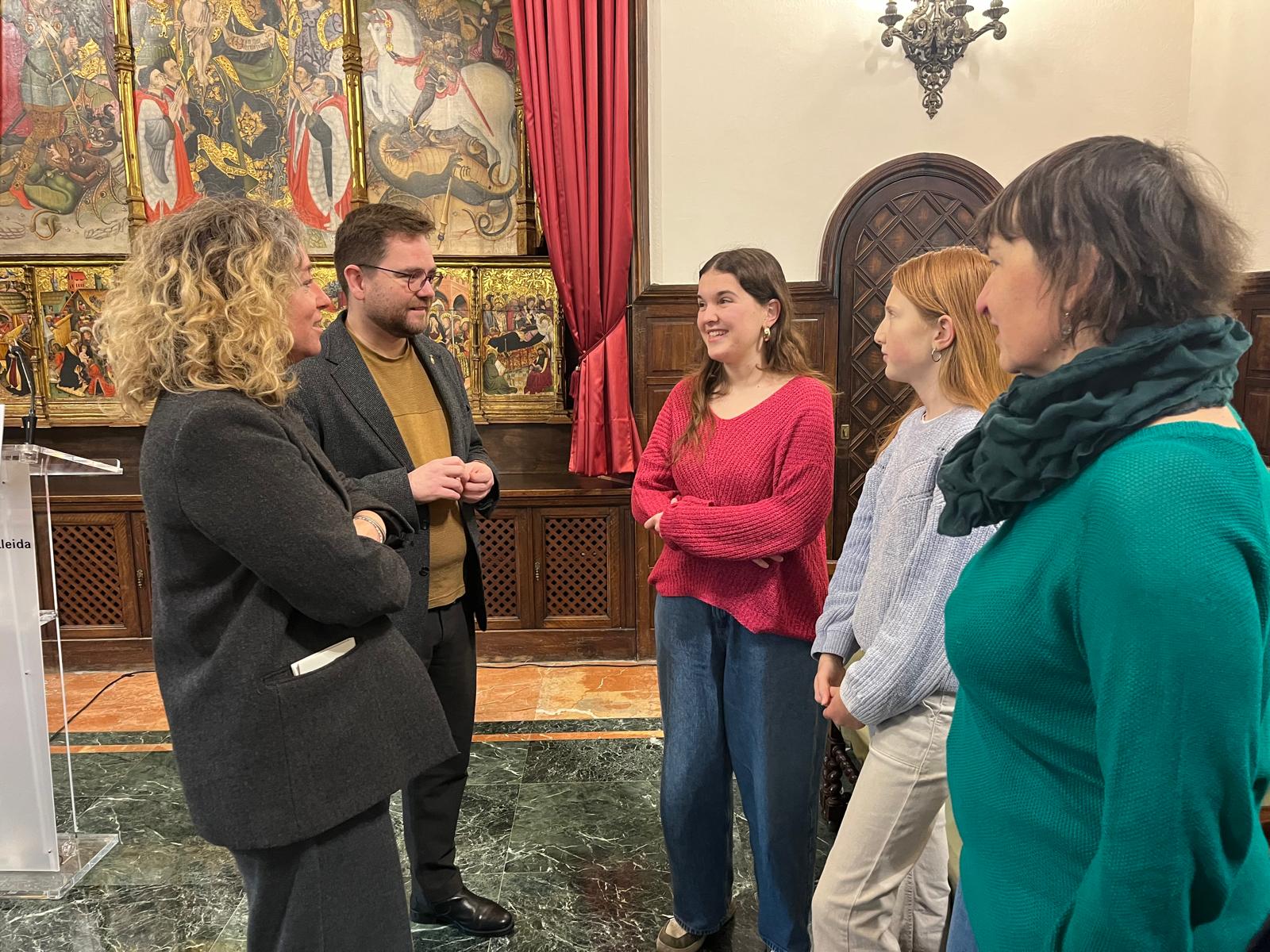 La regidora Pilar Bosch, i el regidor Roberto Pino, acompanyats del Comissionat de l’Any Viñes, Màrius Bernadó, han rebut avui a la Paeria la guanyadora de la 1a edició de la Beca Ricard Viñes 2025, Andrea Budau. La beca, creada aquest any en el marc de l’Any Viñes, vol ser un reconeixement al talent local i un impuls en la projecció internacional dels joves músics lleidatansA la recepció, que s’ha fet al Saló del Retaule, hi han assistit familiars de la becada, les regidores Laura Bergés, Ana Maria Florista i Glòria Rico, el director del Conservatori i Escola Municipal de Música de Lleida Ricard Viñes, Josep Lluís Boix, i la Responsable Coordinadora d’Educació de la Paeria, Marta Alegret.