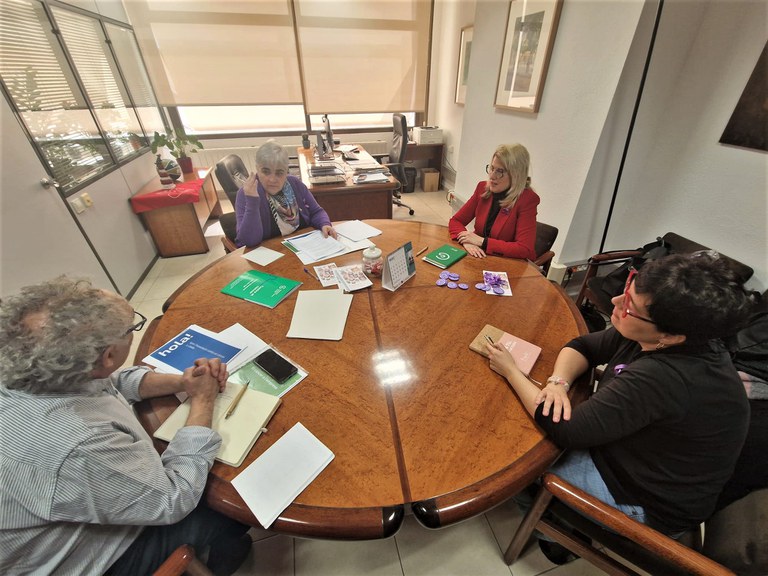La tinenta d’alcaldia de Bon Govern de l’Ajuntament de Lleida, Carme Valls, s’ha reunit aquest matí amb Francesc Maranges, Eva Figuera i Alícia Badia, president, gerent i tècnica de sostenibilitat de l'Associació Contra el Càncer a Lleida, respectivament