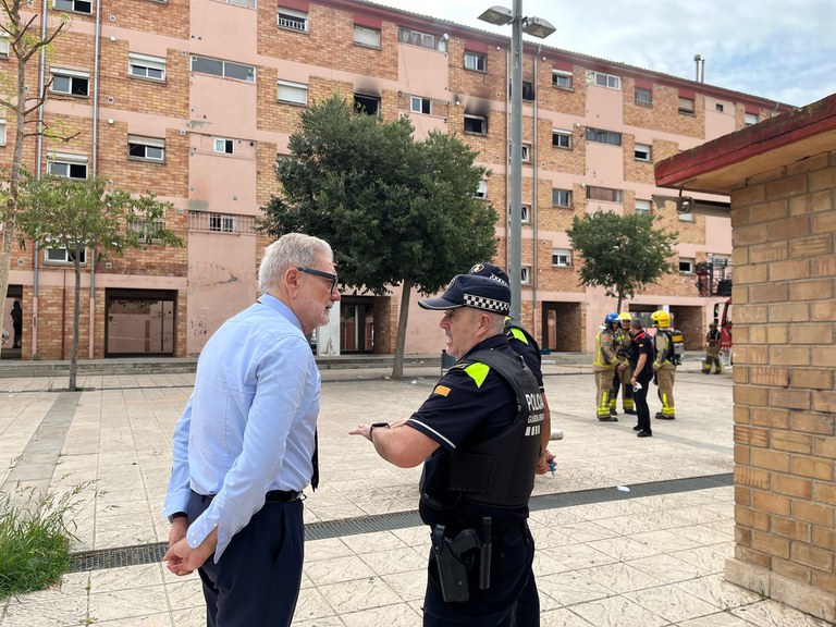 Larrosa ha explicat que “els propietaris del pis incendiat han sortit pel seu propi peu”. Són un home i el seu fill, més un gos que ha estat rescatat pels Bombers.