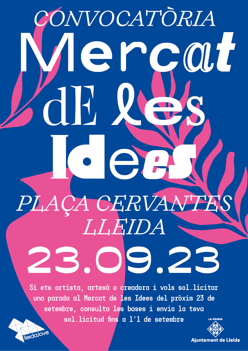 La Regidoria de Joventut ha organitzat una nova edició del Mercat de les Idees que tindrà lloc el dissabte 23 de setembre a la plaça Cervantes de Lleida, en el marc de l’Obert Centre Històric. La convocatòria per sol·licitar una parada al mercat està oberta fins a l’1 de setembre. Els i les joves que tinguin entre 16 i 35 anys, que siguin artistes o artesans i que vulguin muntar-hi una parada, han de consultar les bases i omplir la sol·licitud per participar-hi.