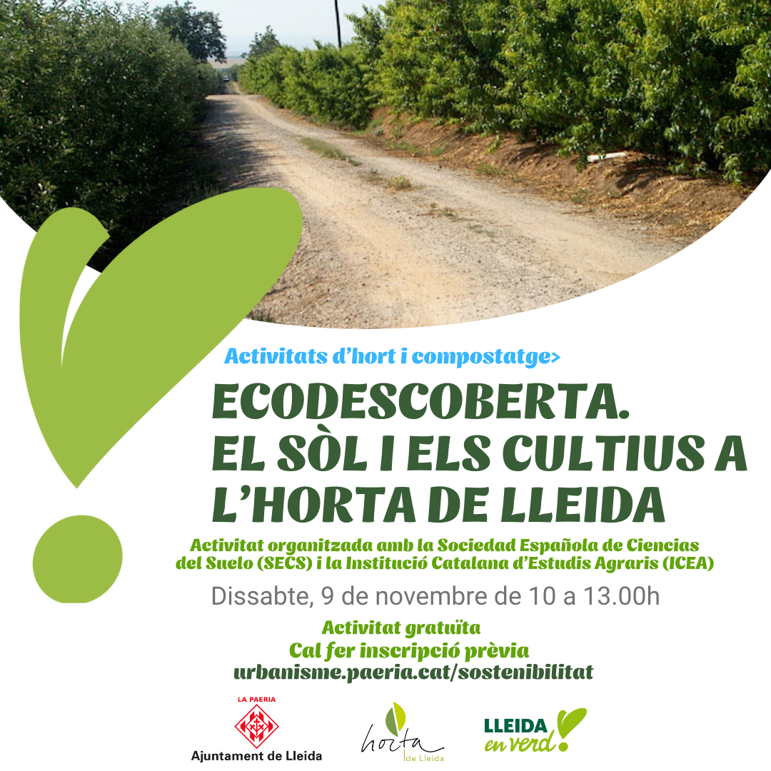 Les Ecoactivitats, propostes de natura i medi ambient impulsades per regidoria de sostenibilitat, han programat, pel pròxim 9 de novembre, una activitat que te l’objectiu de posar en valor la importància del sòls i com afecta als cultius a l’Horta de Lleida.