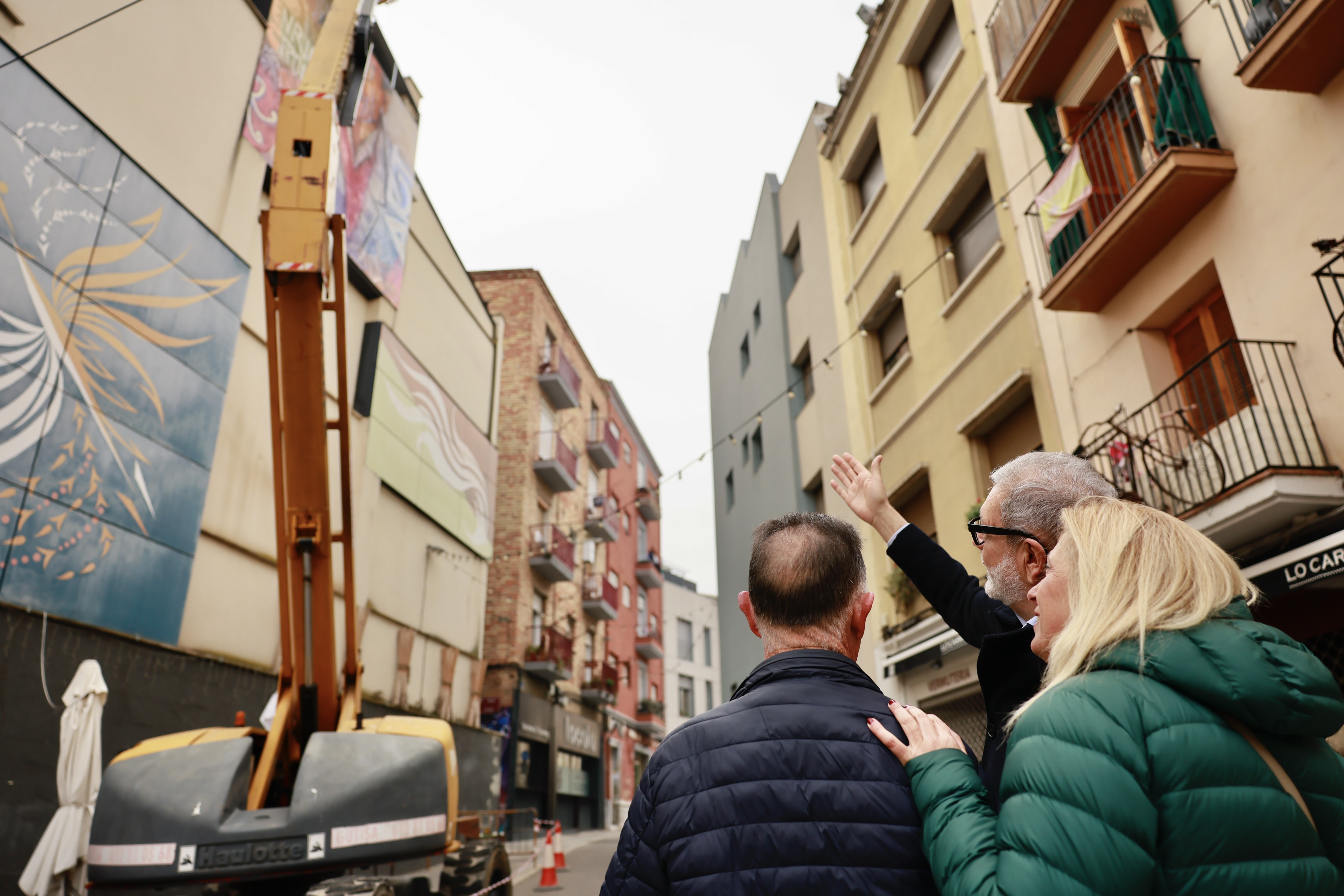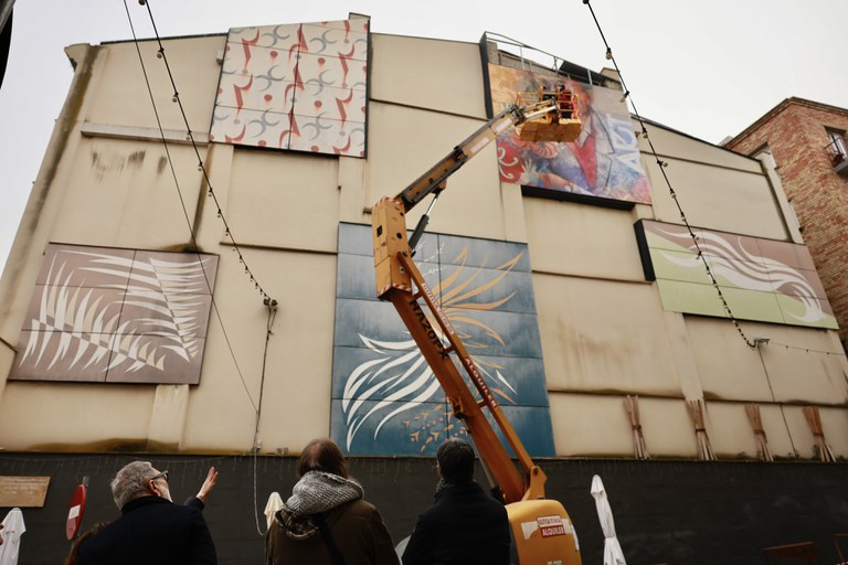 El Centre Històric de Lleida ha estrenat avui un nou mural gegant per posar en valor la figura d’Enric Crous, obra de l’artista Rafael Borlansa. El paer en cap, Fèlix Larrosa, ha assistit al muntatge del mural, ubicat al xamfrà entre els carrers La Palma i Lluís Besa, al costat dels altres quatre murals que recorden l'obra de l'artista.