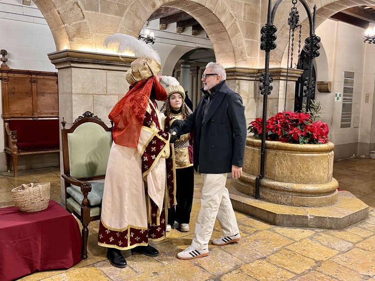 L’alcalde, Fèlix Larrosa, i el regidor Roberto Pino l’han rebut aquest vespre a la Paeria. A continuació i per finalitzar la seva tasca, l’emissari reial ha atès els nens i nenes que han assistit a l’acte i ha recollit les darreres cartes abans de l’arribada de Ses Majestats demà a la tarda.