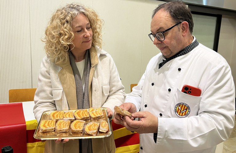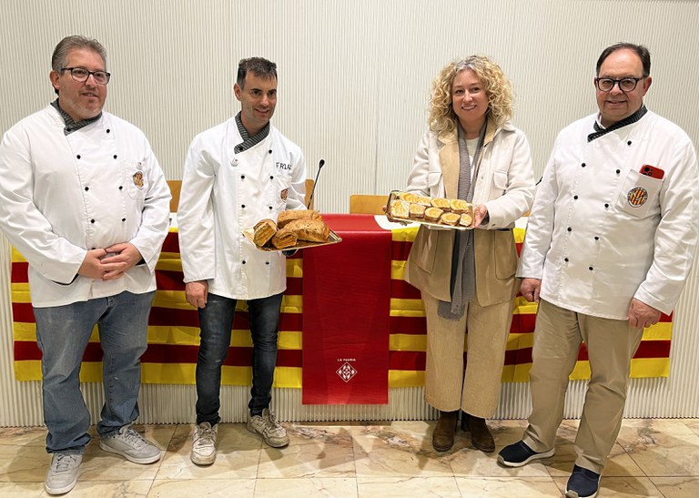 La regidora Pilar Bosch ha destacat aquest producte que el Gremi de Forners de les Terres de Lleida elabora cada any amb motiu de la Diada de Sant Jordi i que dibuixa les quatre barres catalanes