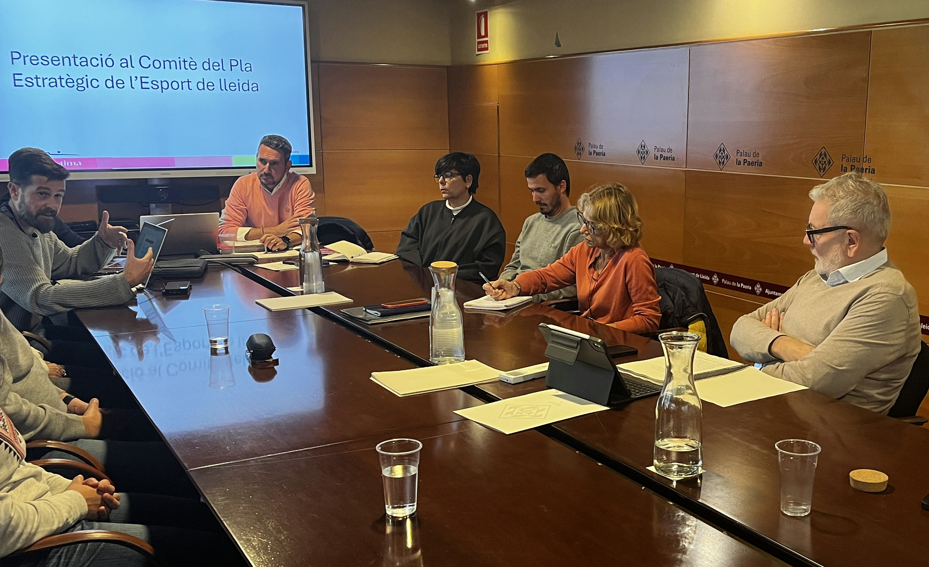 El Pla Estratègic de l’Esport de Lleida entra ja a la recta final. Després d’un intens procés participatiu amb clubs, entitats, experts i tècnics municipals, el pla ha finalitzat la fase de redacció i passarà pròximament per la Comissió Extraordinària de l’àrea i per la Junta de Govern perquè, a continuació, es pugui presentar públicament a la ciutat. El paer en cap, Fèlix Larrosa, acompanyat del regidor d’Esports, Jackson Quiñónez, s’han reunit avui amb el Comitè Estratègic per compartir aquest projecte, que s’alinea amb les necessitats reals de la ciutat i que inclou una mirada transversal.