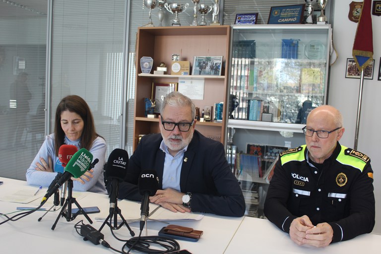 L’alcalde de Lleida, Fèlix Larrosa, i la tinenta d’alcalde de Seguretat, Civisme i Mobilitat, Cristina Morón, han presentat el document que se sotmetrà a aprovació el 8 de març a la Junta Local de Seguretat, un cop s’hagin incorporat les propostes que arribin dels grups municipals i del propi govern