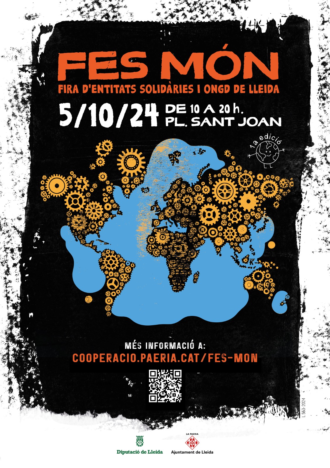 Amb la I Fira d’Entitats Fes món, la Regidoria de Cooperació ofereix la possibilitat de conèixer la xarxa solidària de Lleida i atansar-vos a les diferents activitats, recursos i materials didàctics que les ONGD i entitats tenen a la vostra disposició. Serà un espai de trobada a Lleida, entre entitats i ciutadania, amb la presentació de propostes on les organitzacions treballen en la defensa dels Drets Humans i dels Drets Humans de les Dones al Nord i al Sud Globals. La programació de la jornada està pensada per arribar a tots els públics, amb unes activitats variades que siguin d’interès.