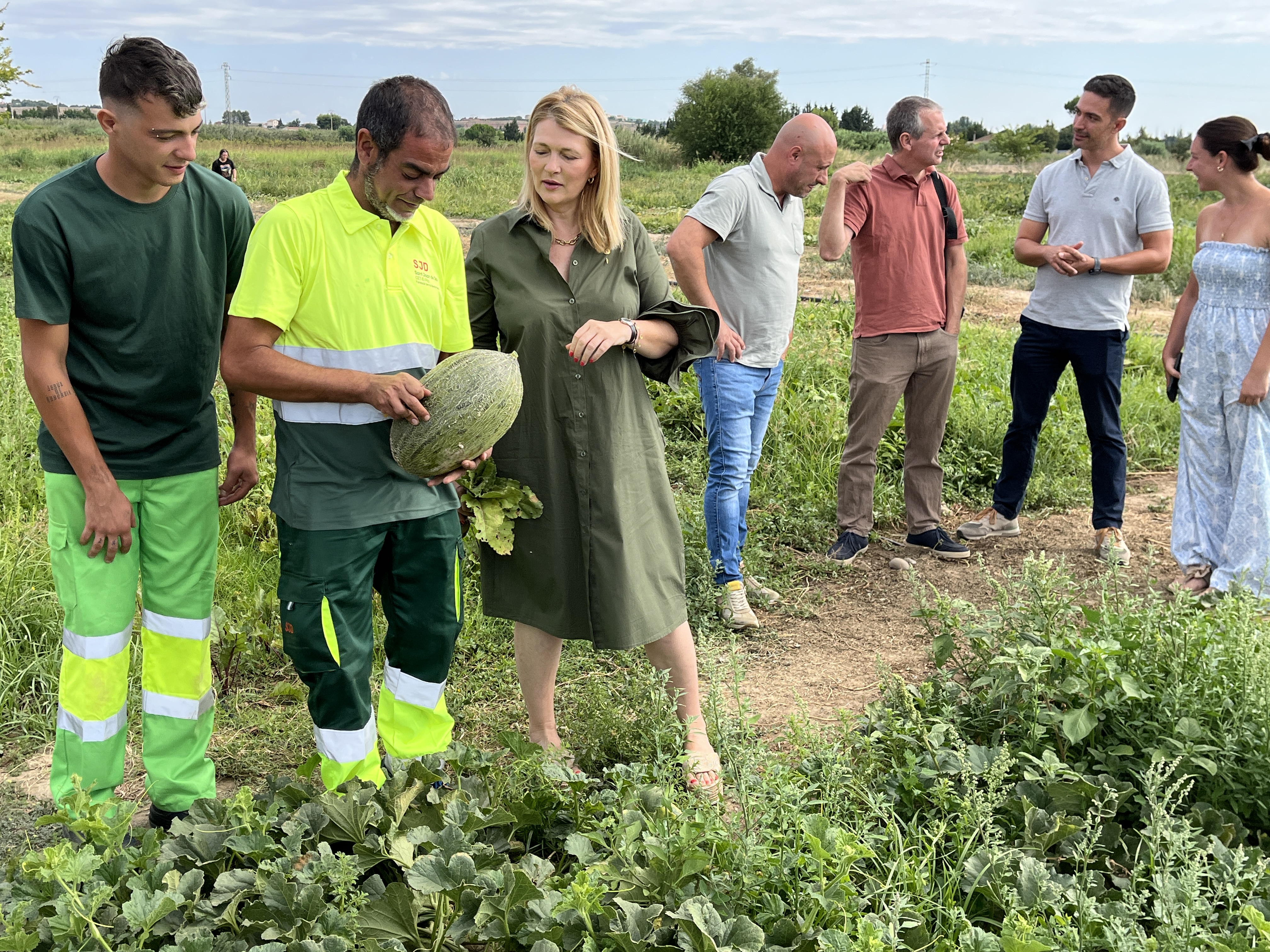 L’alcaldessa accidental, Begoña Iglesias, ha visitat avui l’explotació, on ha pogut conèixer alguns dels 5 treballadors i 2 tècnics que participen en aquest projecte, acompanyada dels representants de Sant Joan de Déu. Des del mes de febrer han plantat carbassons, carbasses, melons, remolatxes, cebes i porros.