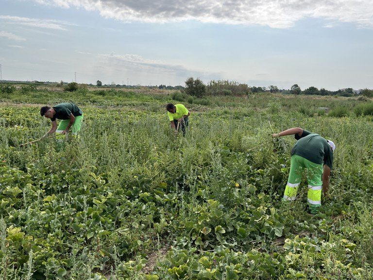 Cinc persones en risc d’exclusió o amb discapacitat i 2 tècnics produeixen hortalisses ecològiques en aquesta finca municipal, amb les que es produiran cremes de verdures per a supermercats i hospitals