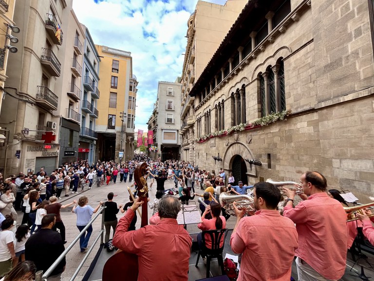 A partir de les 18 h el Pati de les Comèdies, la plaça Sant Joan i la plaça Paeria han estat l’epicentre dels balls tradicionals de festa major. Ballades a plaça a càrrec d’Els Baladrers, el Ball de Festa Major de l’Orquestra Maravella, que han comptat amb 17 músics damunt l’escenari, i la Ballada de Sardanes amb la cobla Vents de Riella, respectivament, han omplert de gaudi, dansa i tradició el centre de la ciutat.