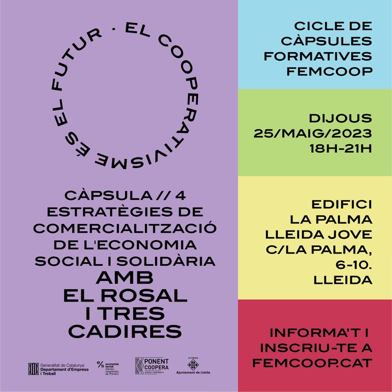 La 3a edició de FemCoop!, un programa que impulsa la Paeria conjuntament amb Ponent Coopera amb l’objectiu d’impulsar l’emprenedoria col·lectiva i l’autoocupació dels joves mitjançant la creació de cooperatives a la ciutat de Lleida, organitza la 4a càpsula informativa que tractarà sobre les estratègies de comercialització de l’economia social i solidària.
