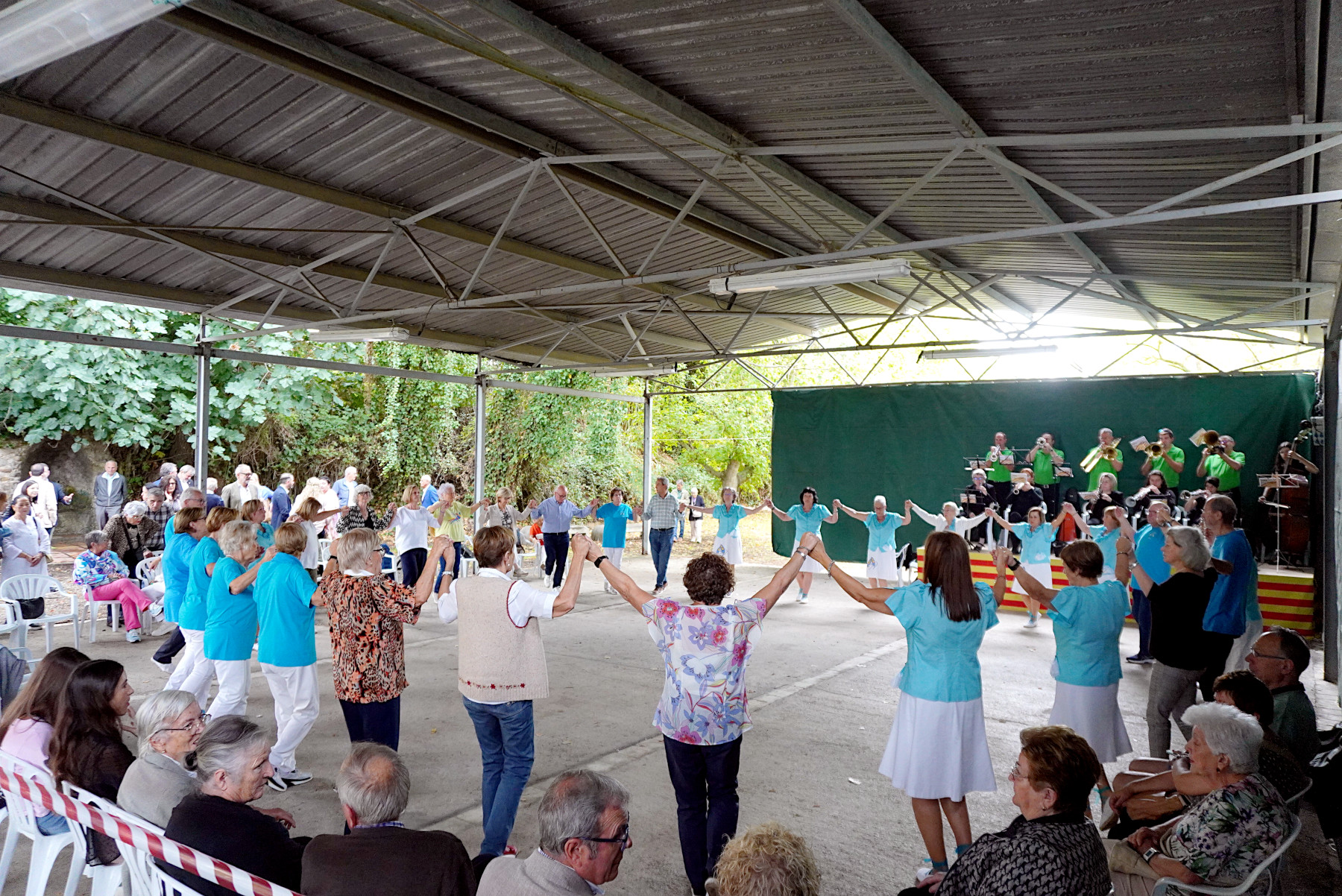 Al cobert del local s’hi ha celebrat també una ballada de sardanes amb la cobla 11 de setembre i un aperitiu popular, abans d’encarar la jornada de tarda, que inclourà jocs i ball a càrrec del grup Golden. La festa, que ja es va iniciar dissabte amb més activitats, ha comptat aquest matí també amb la presència dels regidors Xavi Blanco, Xavi Palau, Jordina Freixanet, Violant Cervera, David Melé i Gloria Rico.