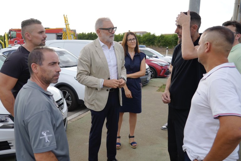 L’alcalde Larrosa s’ha desplaçat fins a les dependències del concessionari per a conèixer de primera mà els detalls de l’incendi i l’estat de les persones que hi treballaven